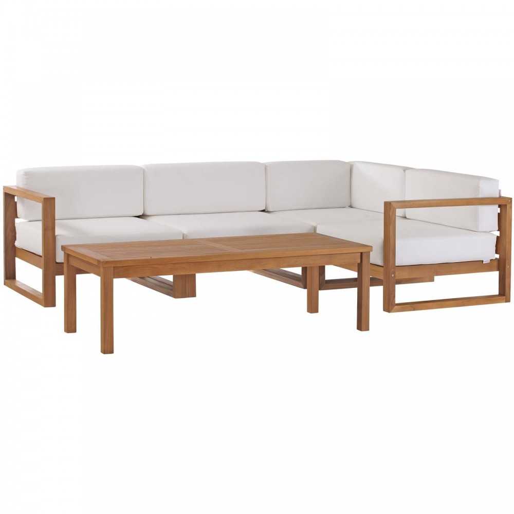 Upland Outdoor Patio Teak Wood 5-Piece Sectional Sofa Set