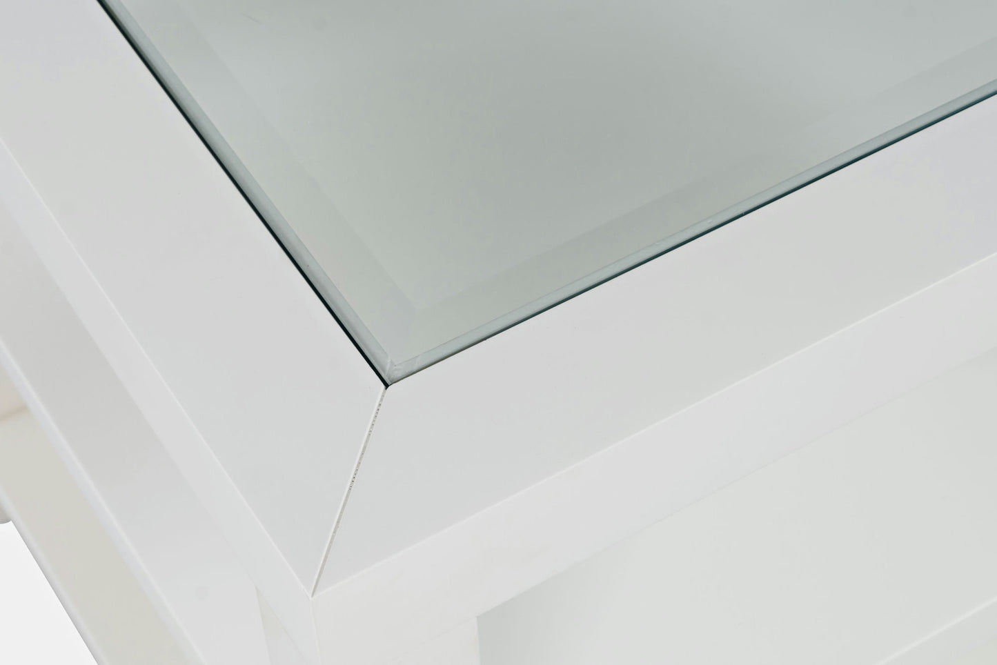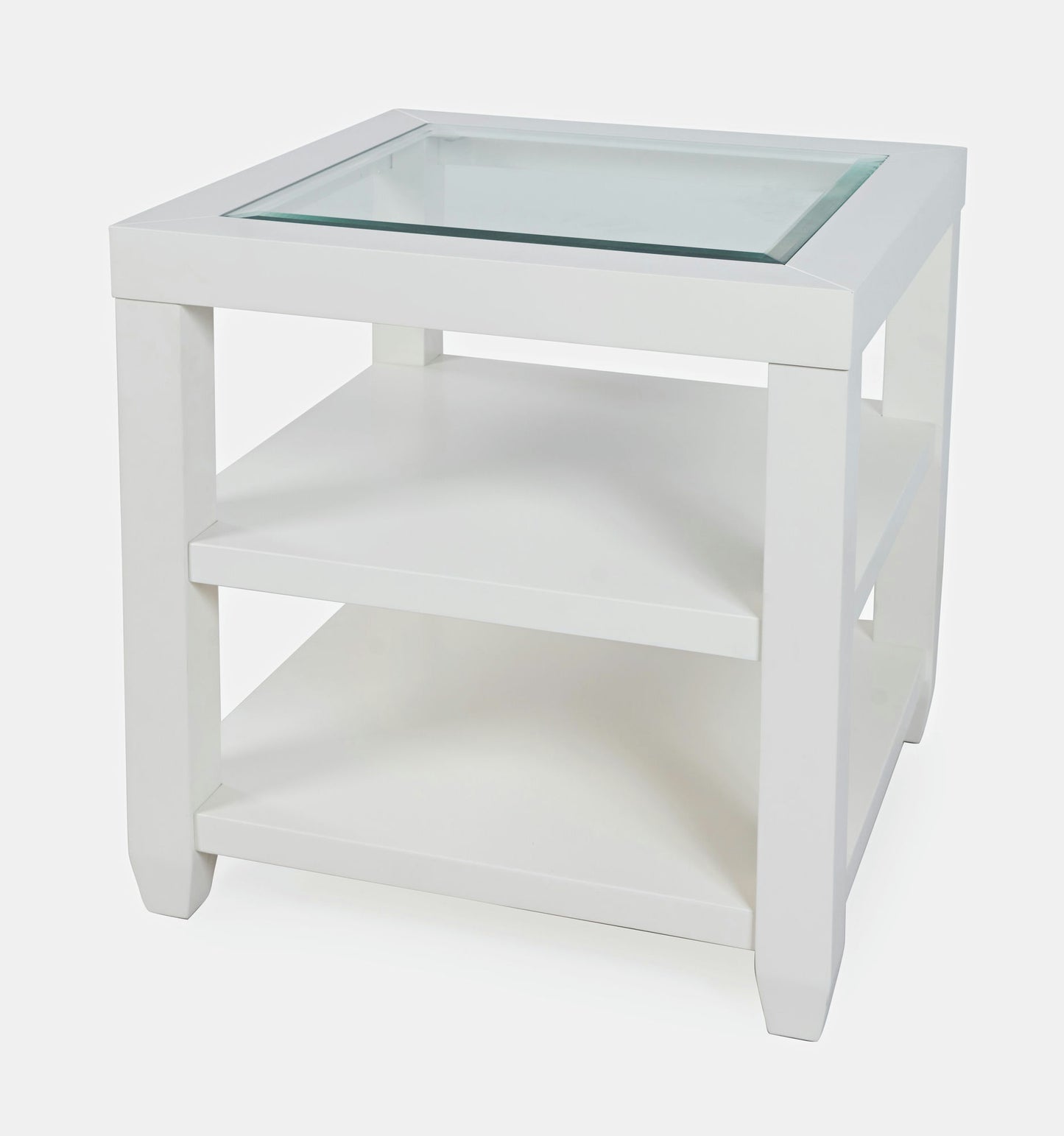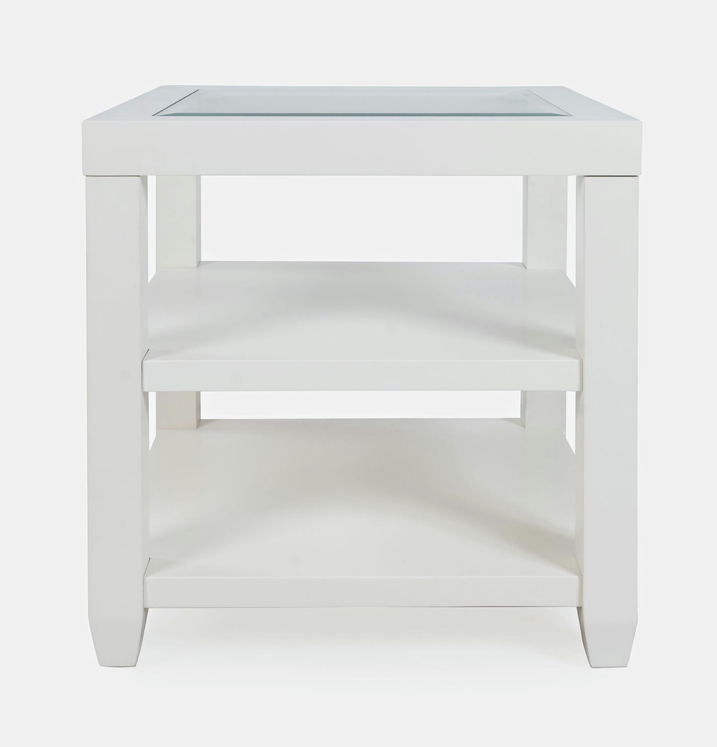 Urban Icon Contemporary Glass Inlay End Table with Storage - White