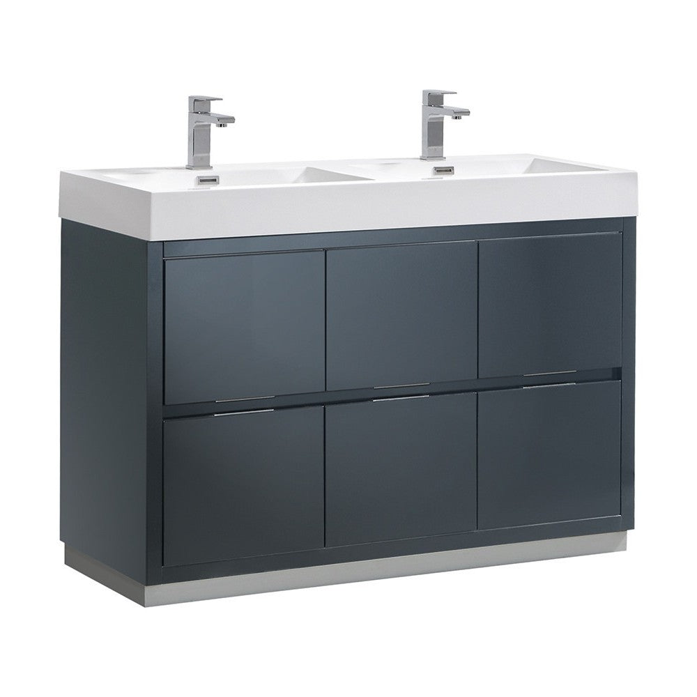 Valencia 48" Dark Slate Gray Free Standing Double Sink Modern Bathroom Vanity