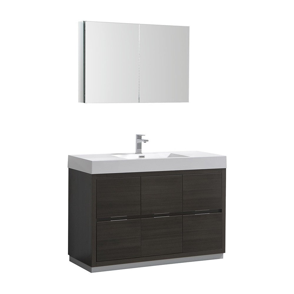 Valencia 48" Gray Oak Free Standing Modern Bathroom Vanity w/ Medicine Cabinet