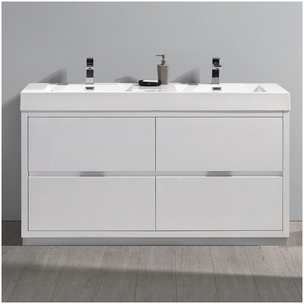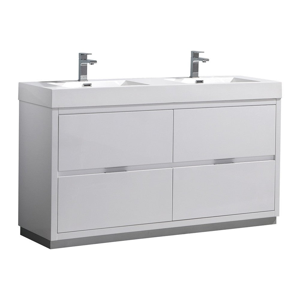Valencia 60" Glossy White Free Standing Double Sink Modern Bathroom Vanity