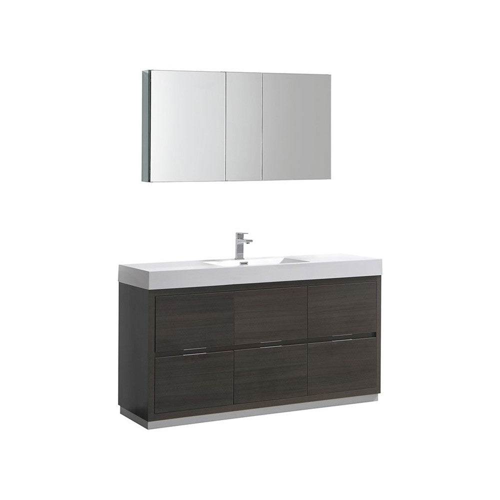 Valencia 60" Gray Oak Free Standing Modern Bathroom Vanity w/ Medicine Cabinet