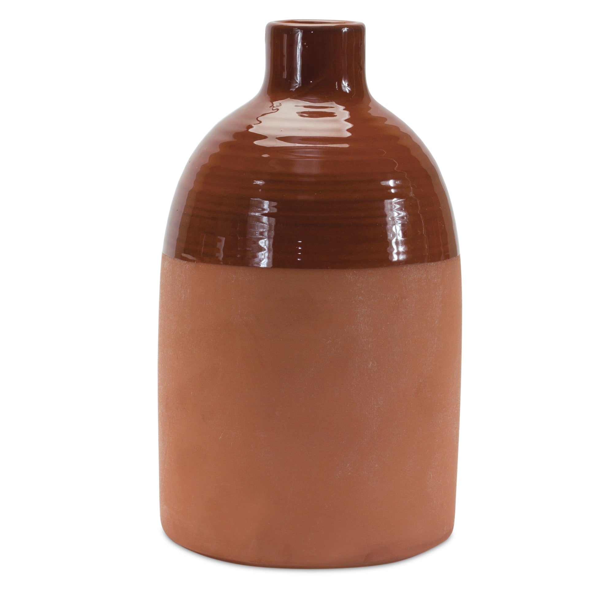 Enhance your home decor with this beautiful set of Ceramic Vases. Featuring two assorted sizes, the warm terracotta hues paired with the half-glazed finish makes it a great addition to any style of decor. The quality ceramic composition is sure to last for seasons to come. Complete the look by adding a bunch of dried florals or fresh-picked garden stems to the vase.