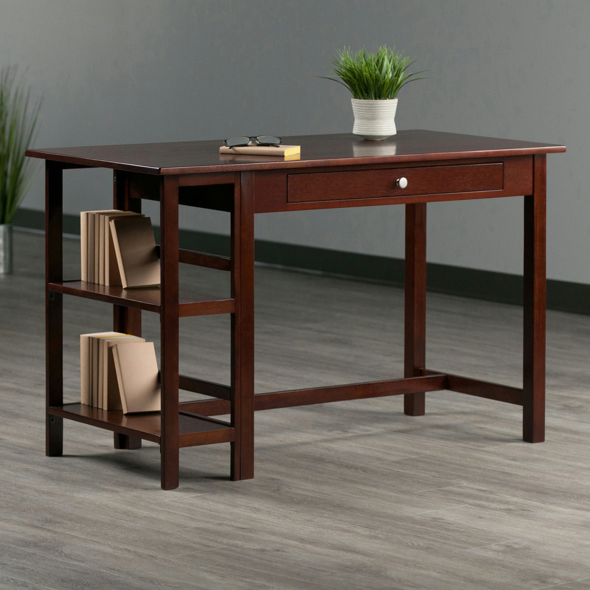 Velda working desk has large working surface with built in side storage. This desk can serve as a computer desk or writing desk in your home. The size provides for maximized workspace. The design creates a look that is both attractive and simple.