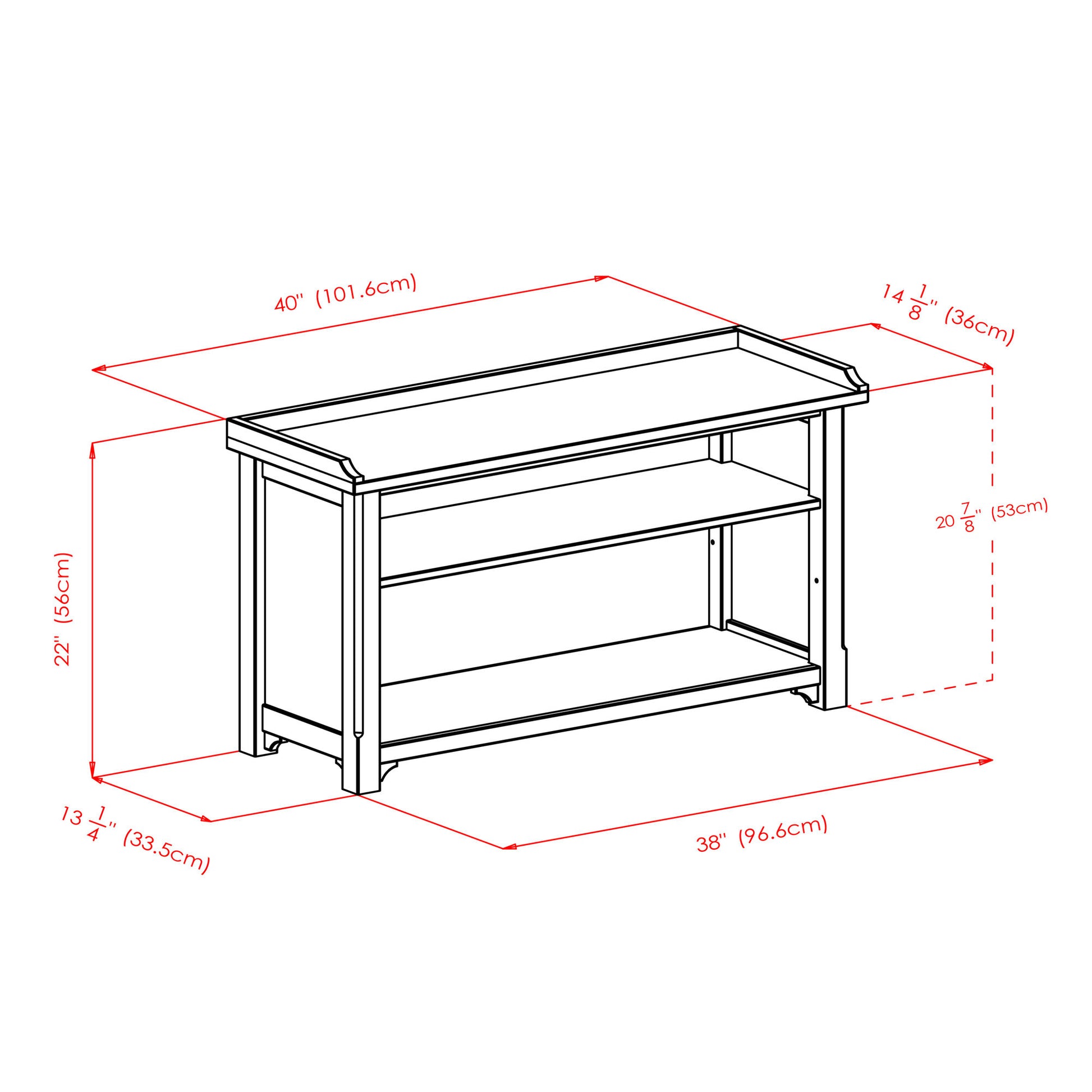 - Overall bench size is 40"W x 14.20"D x 22"H. Seat area is 38.43"W x 13.39"D. Seat Height 20.87".