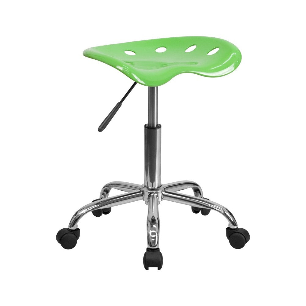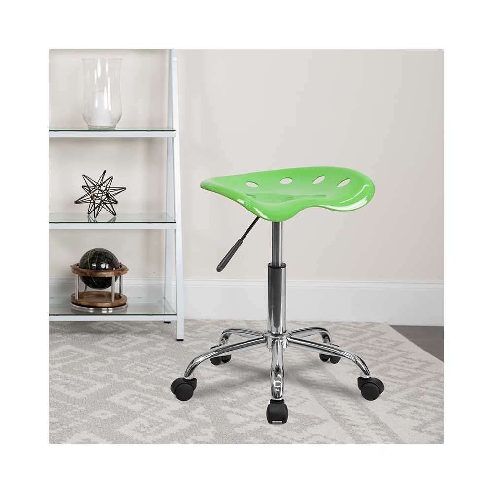This colorful apple green modern designed stool is sure to stand out. Backless stools force your core muscles to work by sitting up straight and keeping your feet flat on the floor. The molded tractor seat offers a tremendous amount of comfort and can be cleaned with a solvent and water based cleaner such as foam. Chair rotates 360 degrees to provide easy access to a greater range of area. The pneumatic adjustment lever will allow you to easily adjust the seat to your desired height. Overall the small frame design of this backless stool will make it easy to maneuver around tight spaces with ease. [LF-214A-APPLEGREEN-GG]