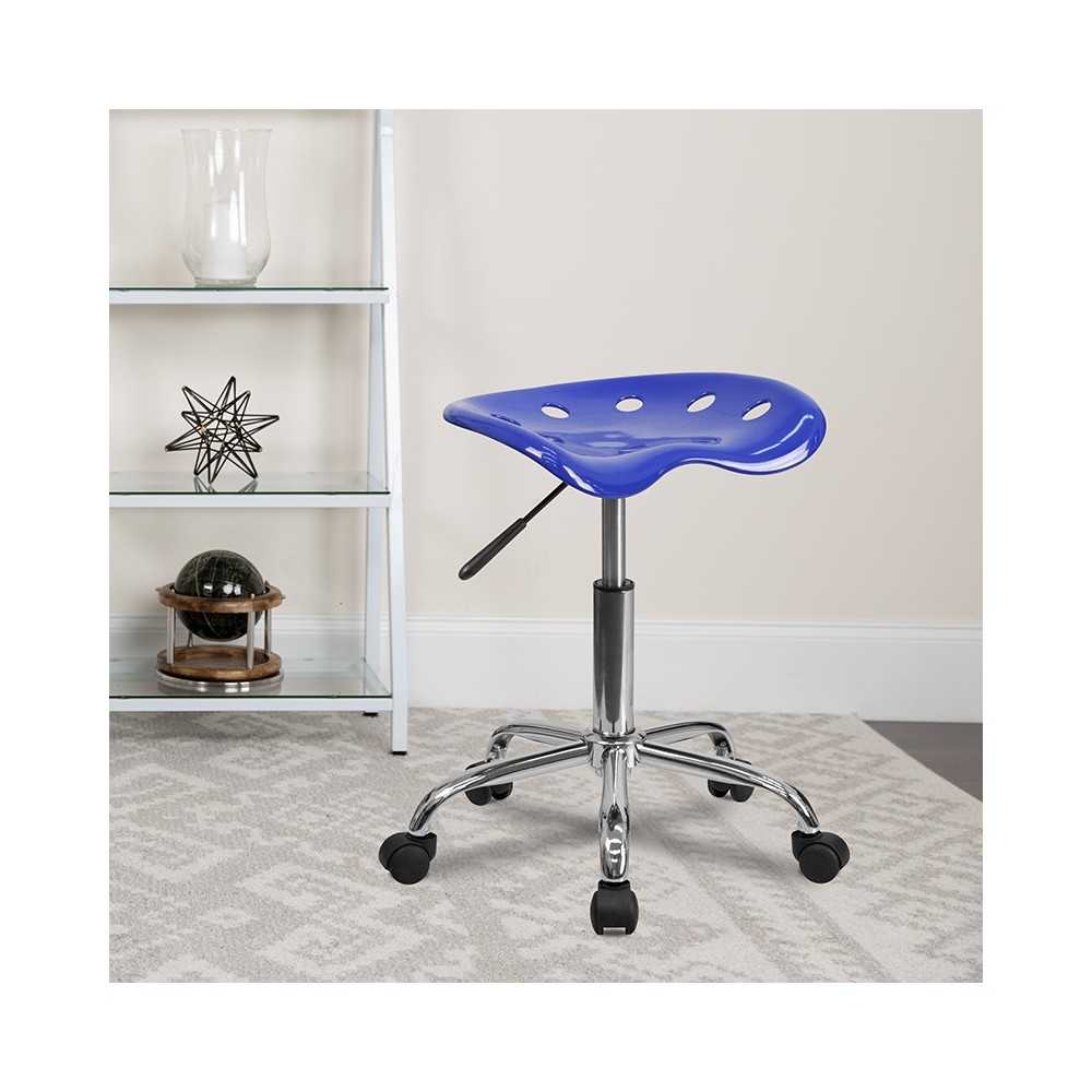 This colorful nautical blue modern designed stool is sure to stand out. Backless stools force your core muscles to work by sitting up straight and keeping your feet flat on the floor. The molded tractor seat offers a tremendous amount of comfort and can be cleaned with a solvent and water based cleaner such as foam. Chair rotates 360 degrees to provide easy access to a greater range of area. The pneumatic adjustment lever will allow you to easily adjust the seat to your desired height. Overall the small frame design of this backless stool will make it easy to maneuver around tight spaces with ease. [LF-214A-NAUTICALBLUE-GG]
