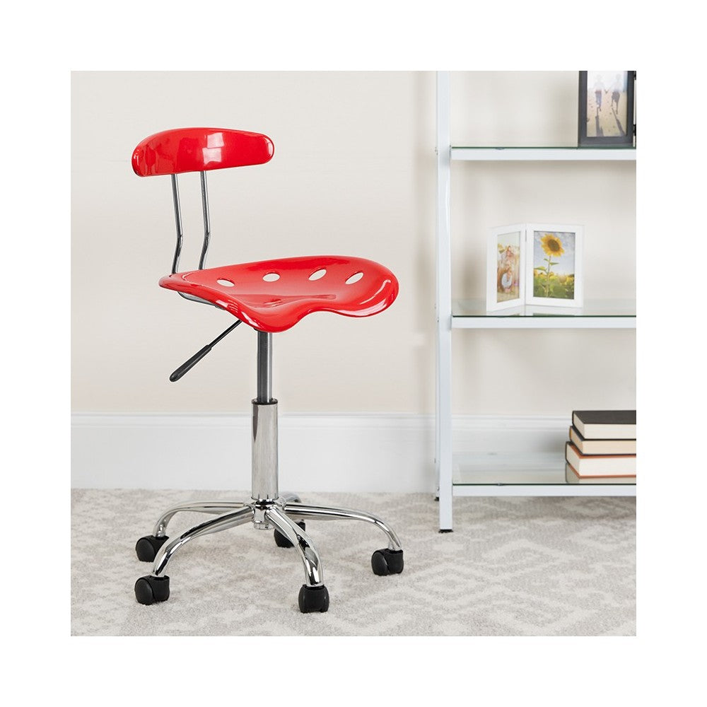 Vibrant Red and Chrome Swivel Task Office Chair with Tractor Seat