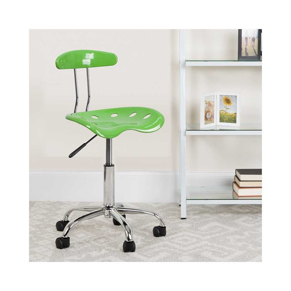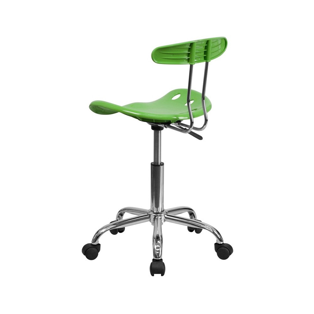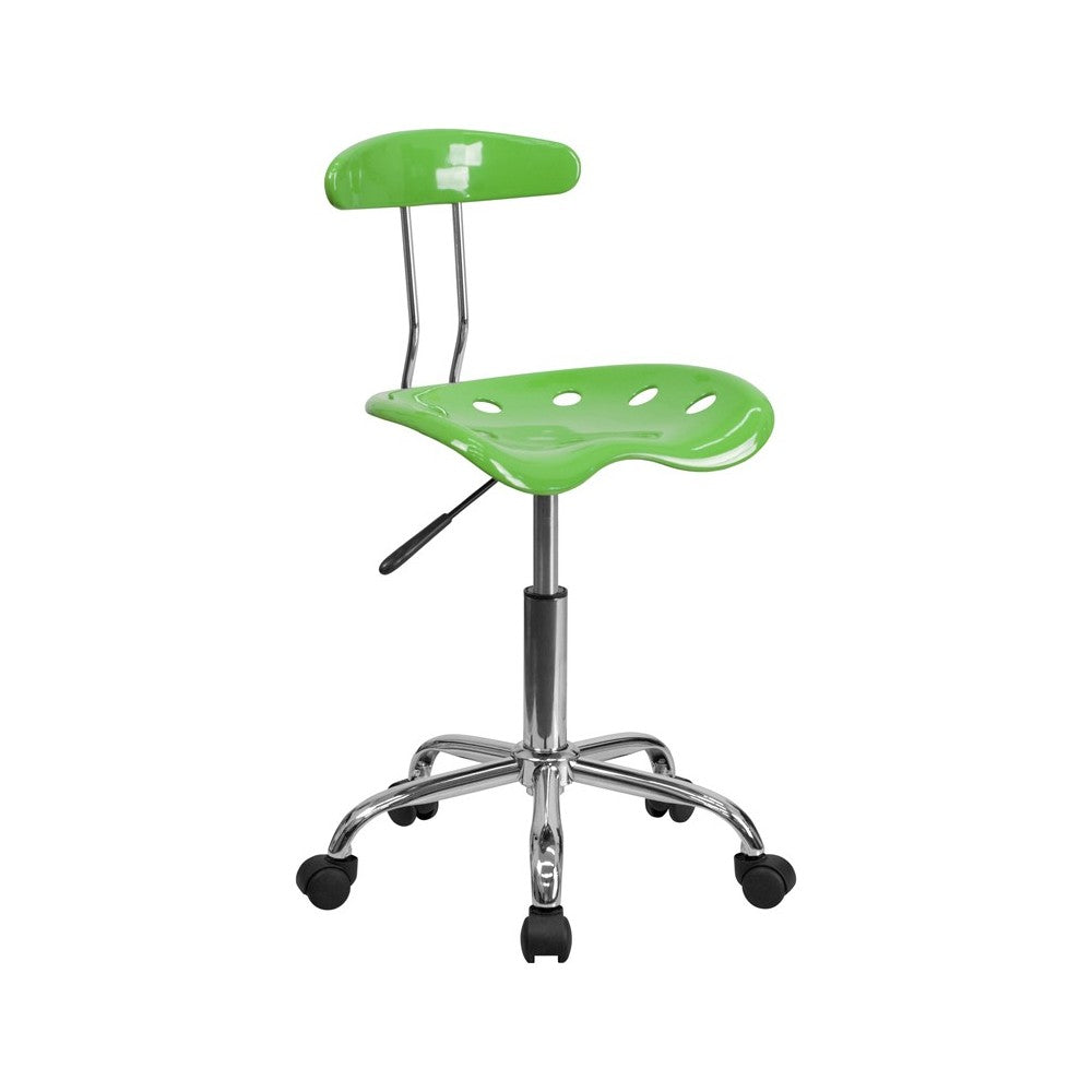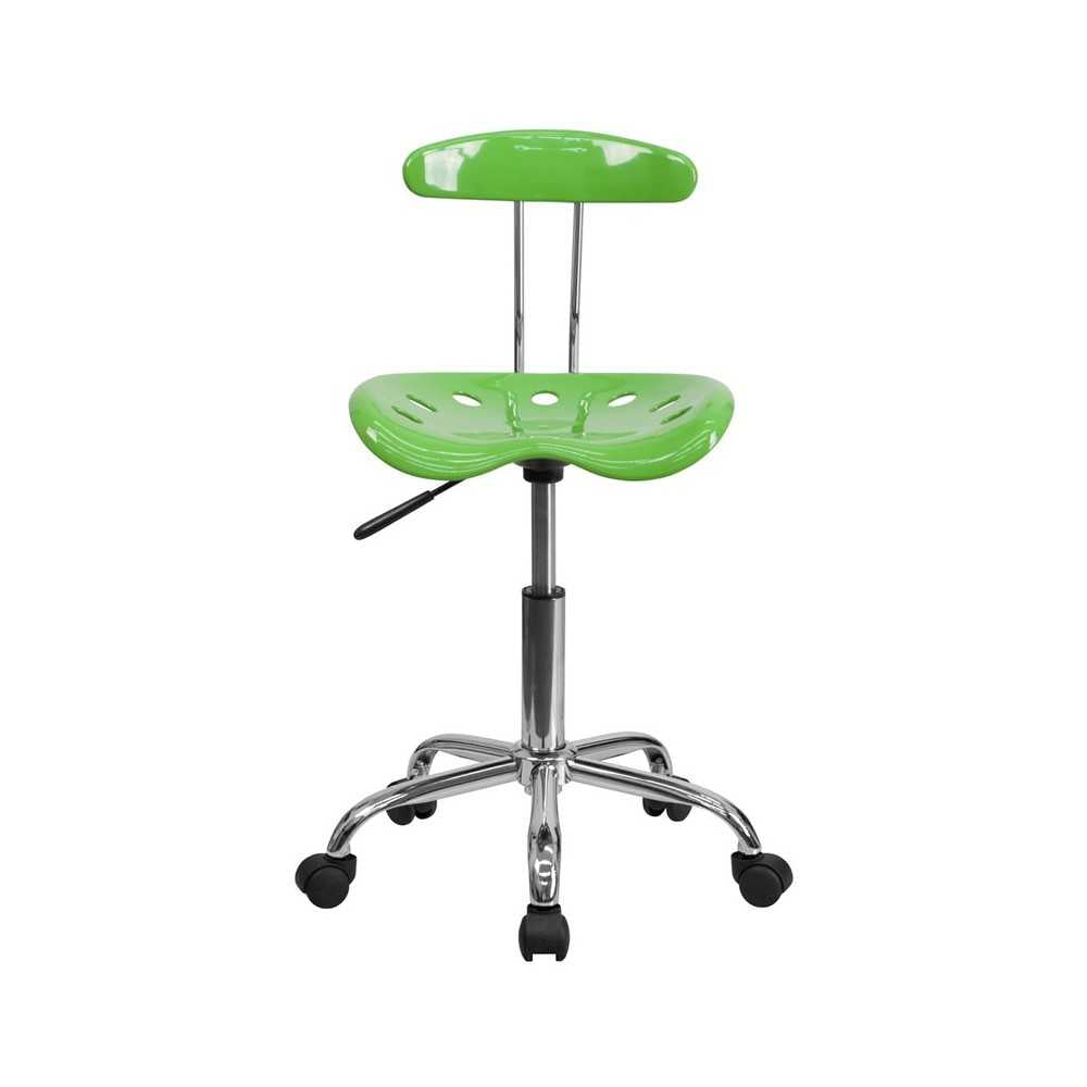 Change up the look in your home office with this colorful vibrant spicy lime task chair. The molded tractor seat offers a tremendous amount of comfort and can be cleaned with a solvent and water based cleaner such as foam. Chair rotates 360 degrees to provide easy access to a greater range of area. The pneumatic adjustment lever will allow you to easily adjust the seat to your desired height. Dual wheel casters provide ease of movement around the space. The small frame of this chair will not take up a lot of space if working in a small area. [LF-214-SPICYLIME-GG]