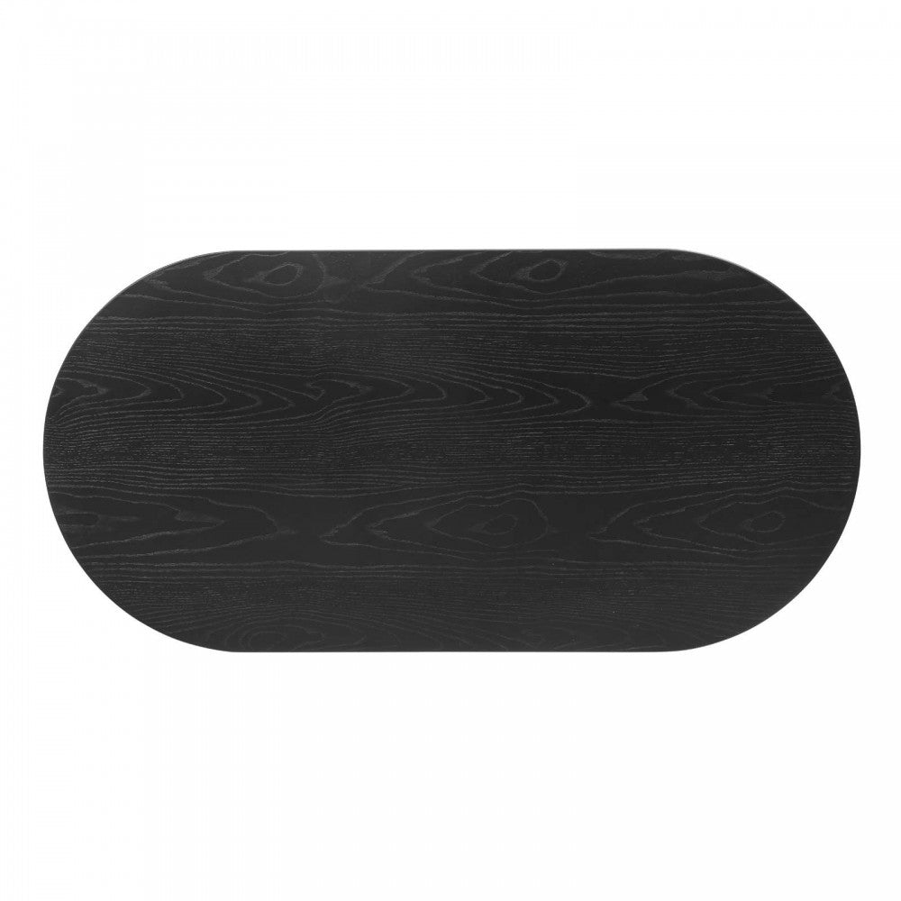 Bring modern influence to your living space with the deliberate style of the Vigor Oval Coffee Table. Reflecting a seamless organic shape, this oval coffee table sits atop four splayed iron legs with gold metal sleeves that bring a glamorous flair to the mid-century modern silhouette. This piece of living room furniture features a MDF tabletop embossed with matte black lacquer for a dark, striking look. Includes adjustable-height foot caps. Assembly required.