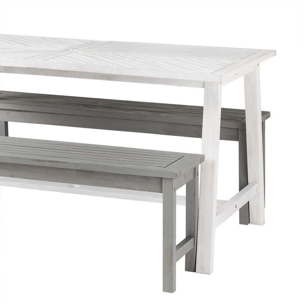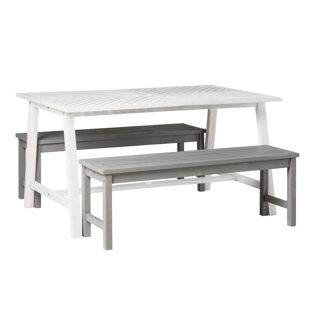 Vincent Solid Acacia Wood 3 Piece Chevron Dining Set - White Wash