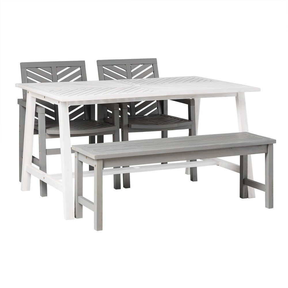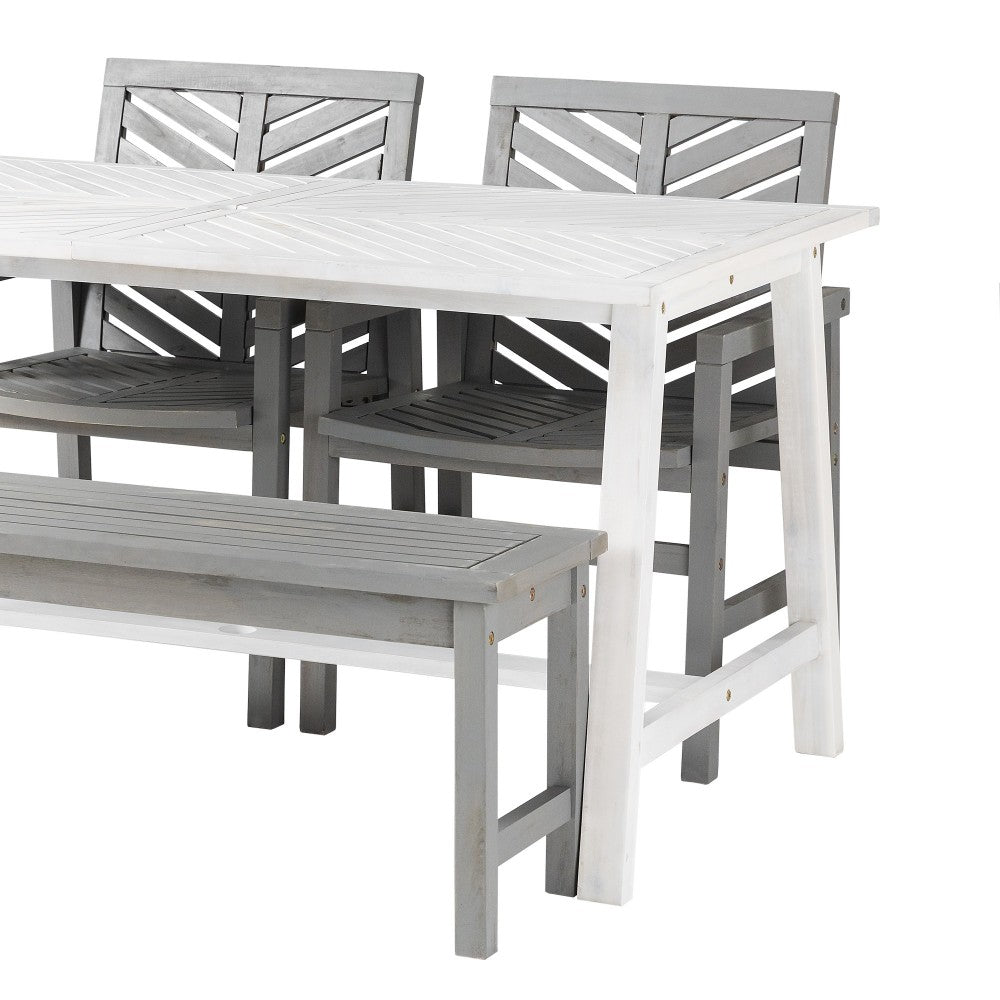Vincent Solid Acacia Wood 4 Piece Chevron Dining Set - White Wash