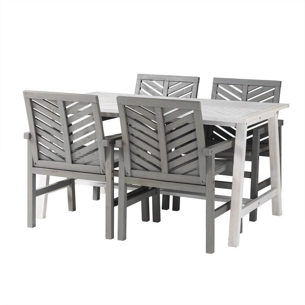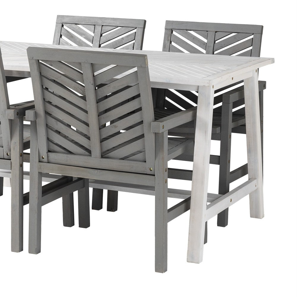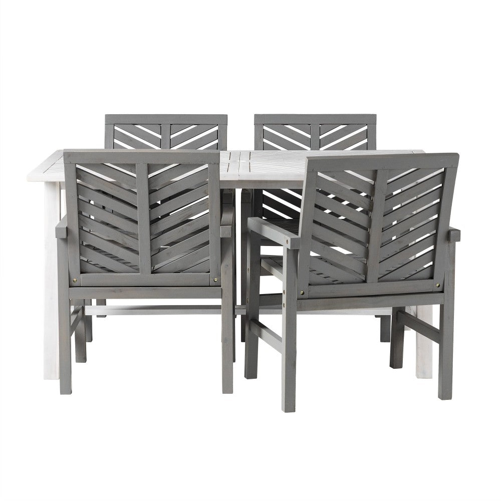Vincent Solid Acacia Wood 5 Piece Chevron Dining Set - White Wash