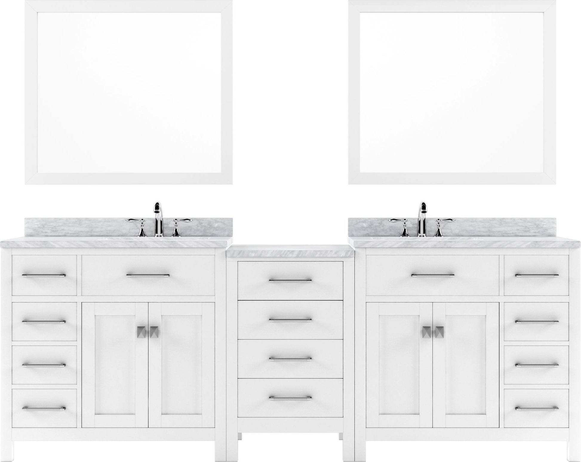 Virtu USA- Caroline Parkway 93" Double Square Sink Marble Top Vanity in White with Mirrors