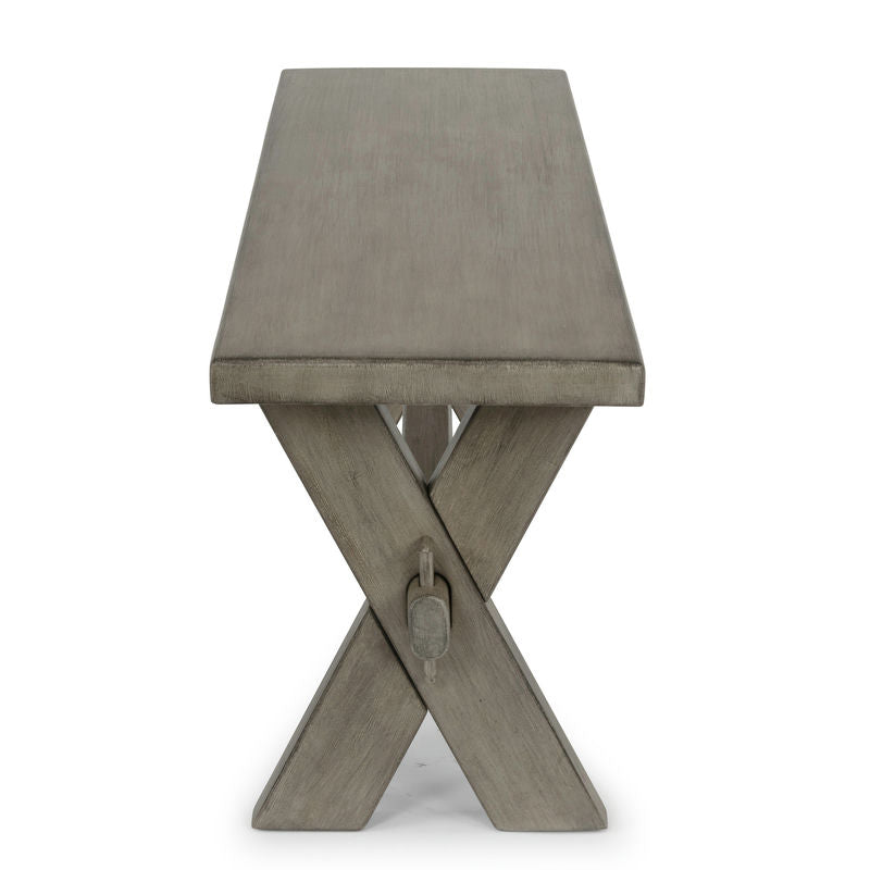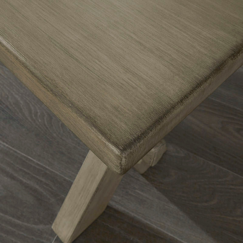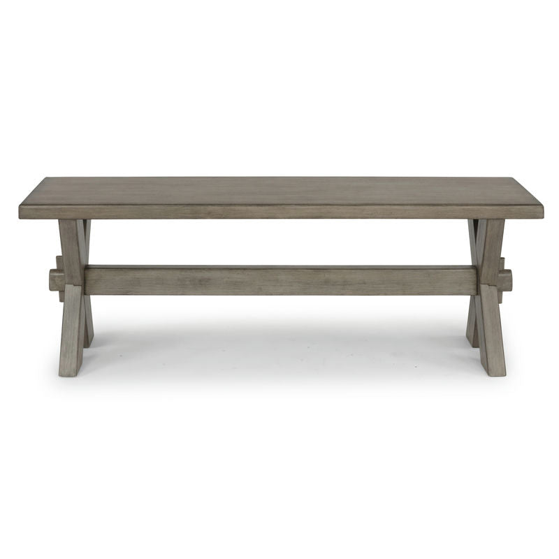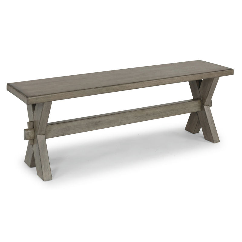 Rustic casual design that is equally at home in a Walker or mid-town loft. The Walker Dining Bench by homestyles is crafted of mahogany solids and veneers with engineered woods and wire-brushed surfaces, providing a rough-hewn look. Finished in a multi-colored gray that adds unique highlighting to the design. Authentic trestle table style construction with X-frame legs. Arrives at your door by parcel delivery service. Finish and measurements may vary. Assembly required. Measures: 18"H x 54:W x 14"D.