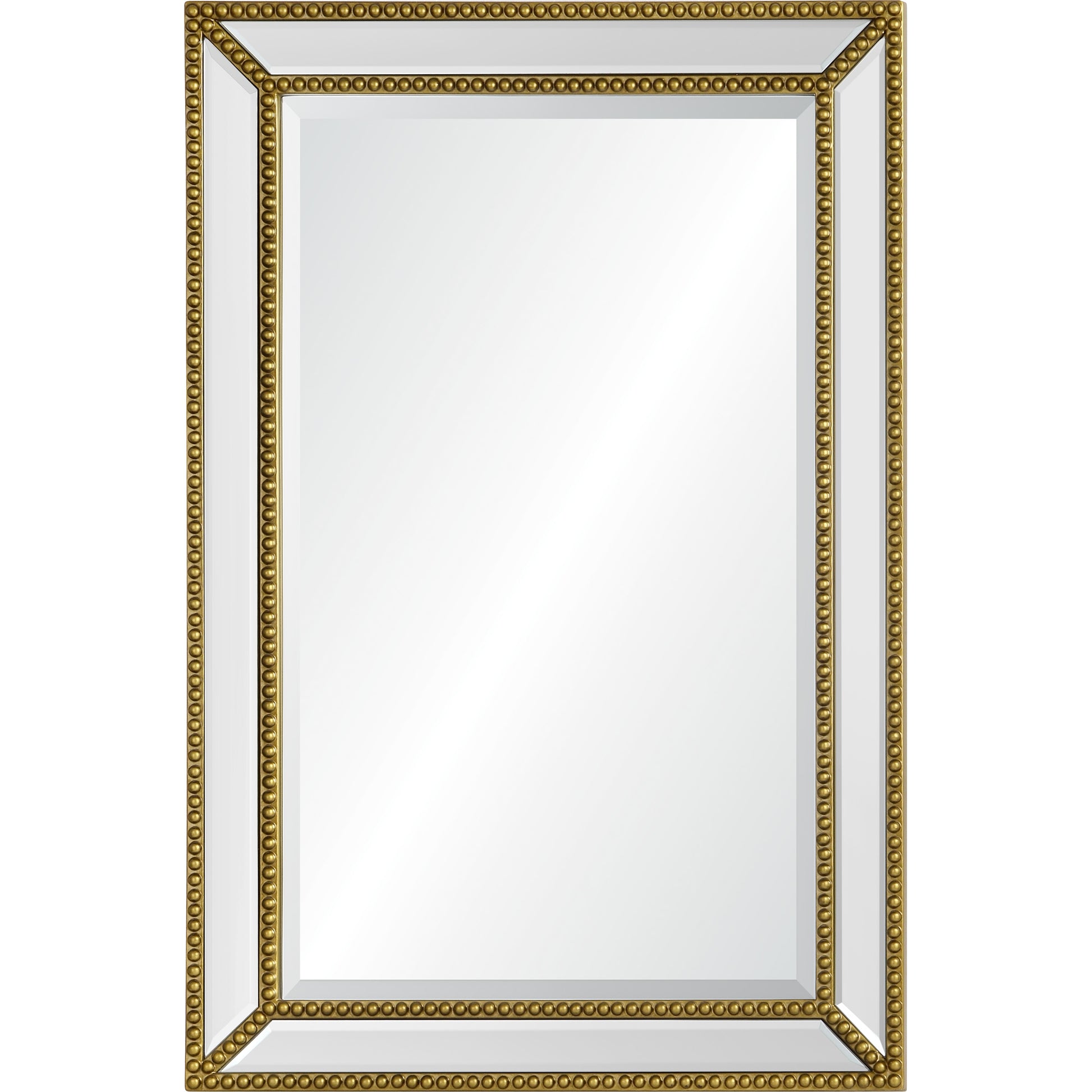 Exuding glamor from every angle, this mirror requires no spotlight to sparkle in the classic interior. An intricate painted gold frame brings a regal touch to the clear glass, proving extensive detail is not required for impact. The 36 by 24-inch structure allows it to heighten the beauty of a space, no matter if it's hung vertically or horizontally.