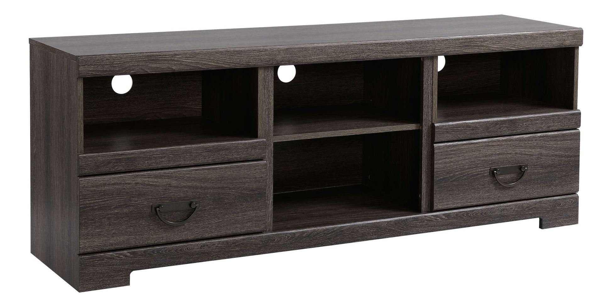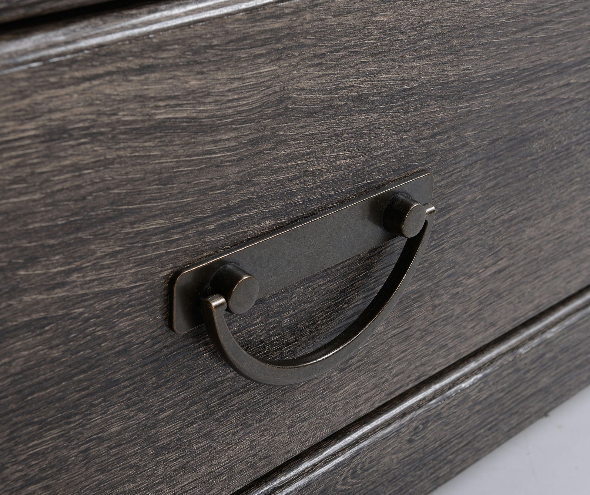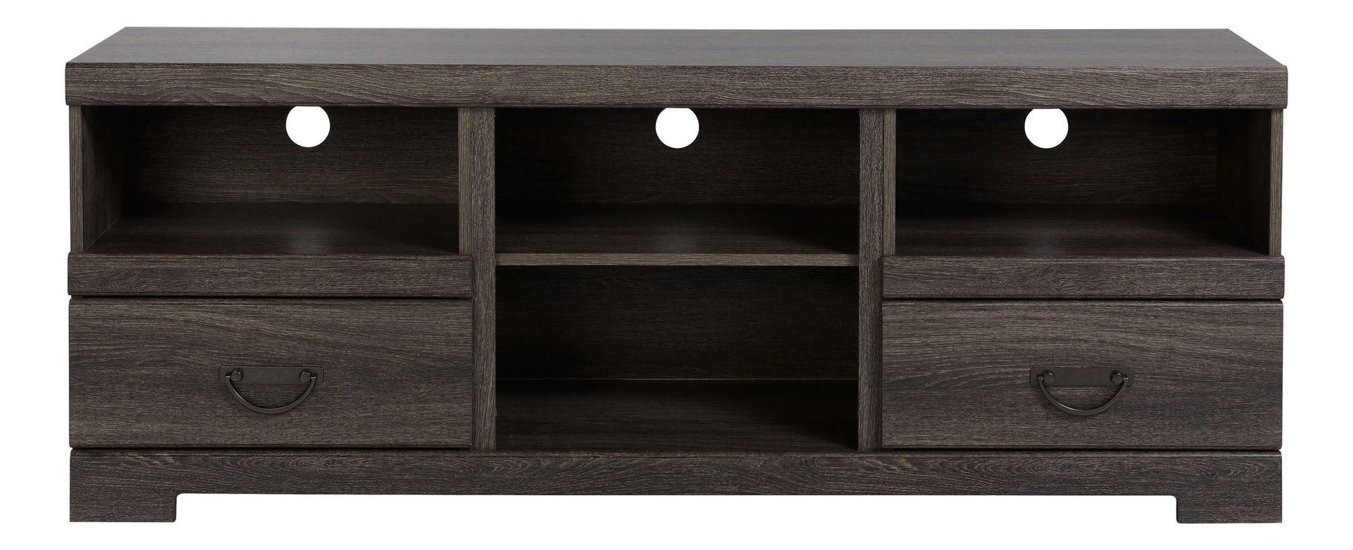 This attractive TV Stand is the perfect addition to any living or entertainment room. The Weatherd Oak finish gives this stand a casual yet high end look while the antique bronze hardware complete the look.