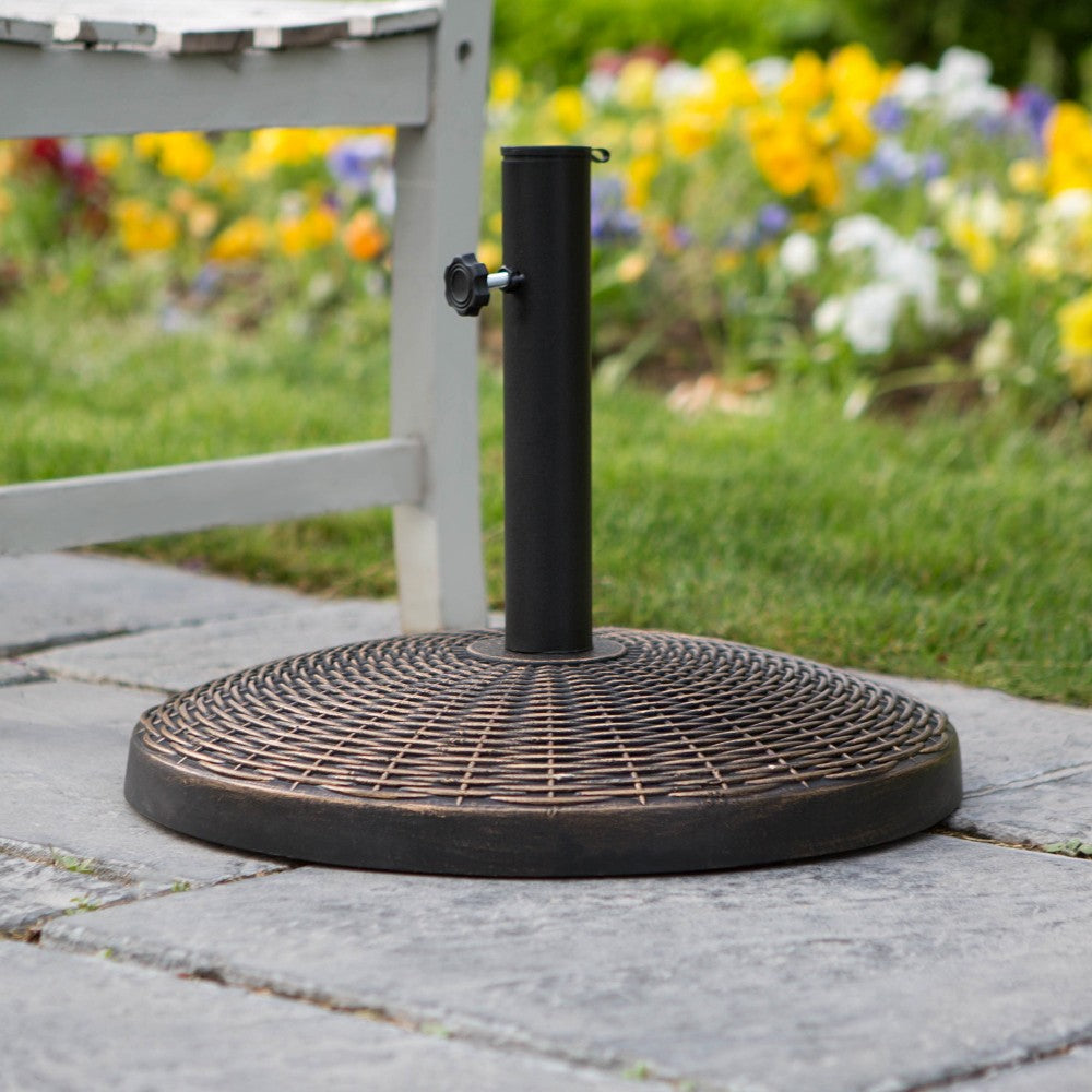 Wicker Style Round Outdoor Patio Umbrella Base - Antique Bronze