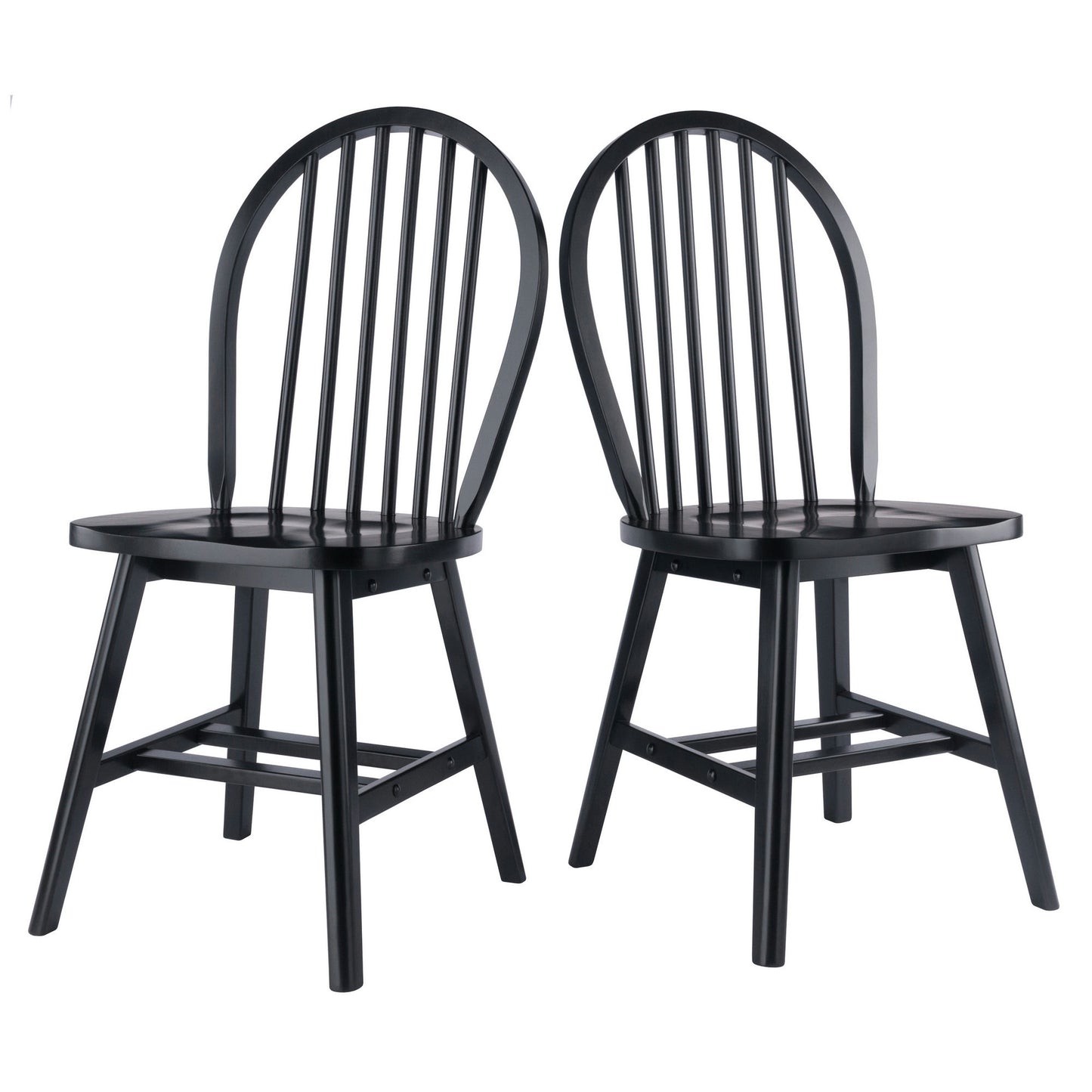 The Windsor Chair design has a long, distinctive history, and this 2-Pc Windsor Chair set will add that sense of classic style to your home. With comfortable, contoured seats and sturdy, double cross-bar leg support, these solid wood chairs are durable and sturdy. Finished in black, they'll refresh your kitchen, dining room, or anywhere you need extra seating.