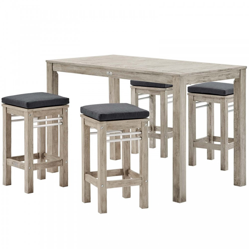 Wiscasset 5 Piece Outdoor Patio Acacia Wood Bar Set