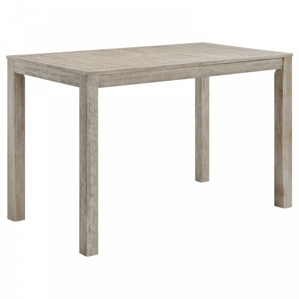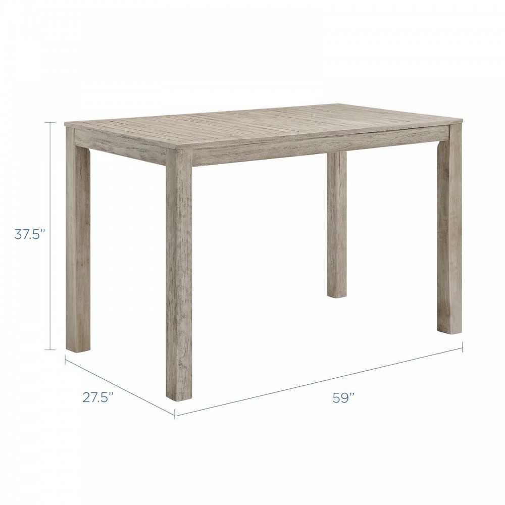 Invoke the refreshing feel of coastal accents with the Wiscasset 59" Outdoor Patio Wood Bar Table and Wiscasset Outdoor Patio Wood Bar Stools. This FSC certified Acacia wood set has a slatted surface and base with a reinforced center beam and matte aluminum supports for a strong seating experience. The densely padded all-weather cushion comes with a durable machine washable cover and ribbons to secure the cushion onto the seat base. This modern outdoor bar set will effortlessly enhance the decor of your patio, deck, porch, or poolside.