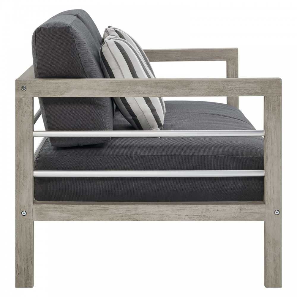 Invoke the refreshing feel of coastal accents with the Wiscasset 2 Piece Outdoor Patio Set. This FSC certified Acacia wood set includes the two-seater loveseat and armchair. Densely padded all-weather cushions come with durable machine washable covers. This modern outdoor set will effortlessly enhance the decor of your patio, deck, porch, or poolside.