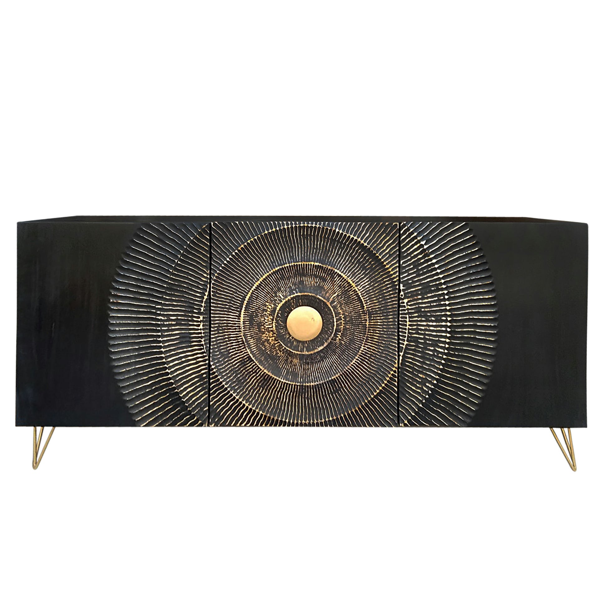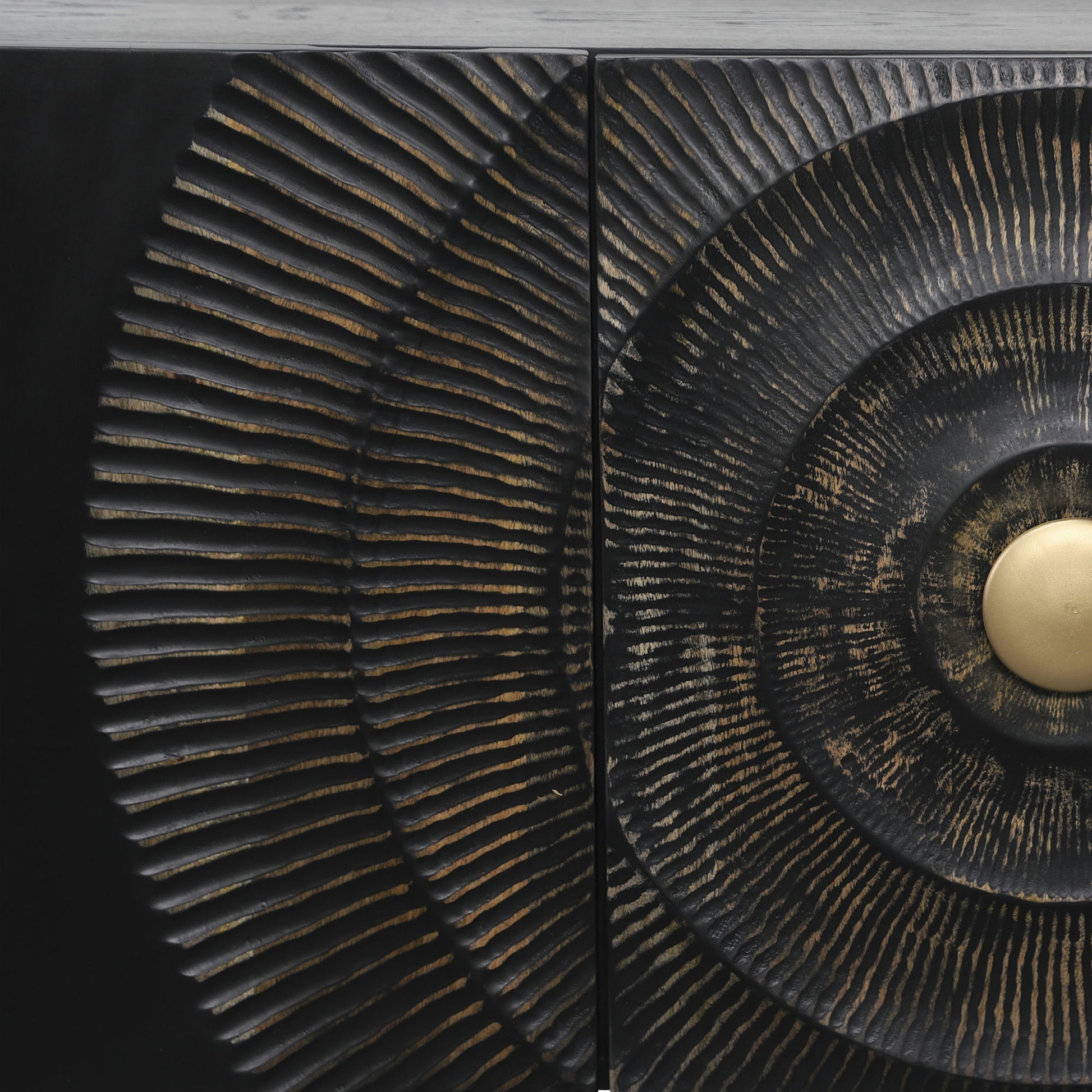 Wood, 63x30 Carved Circle Console Cabinet, Black