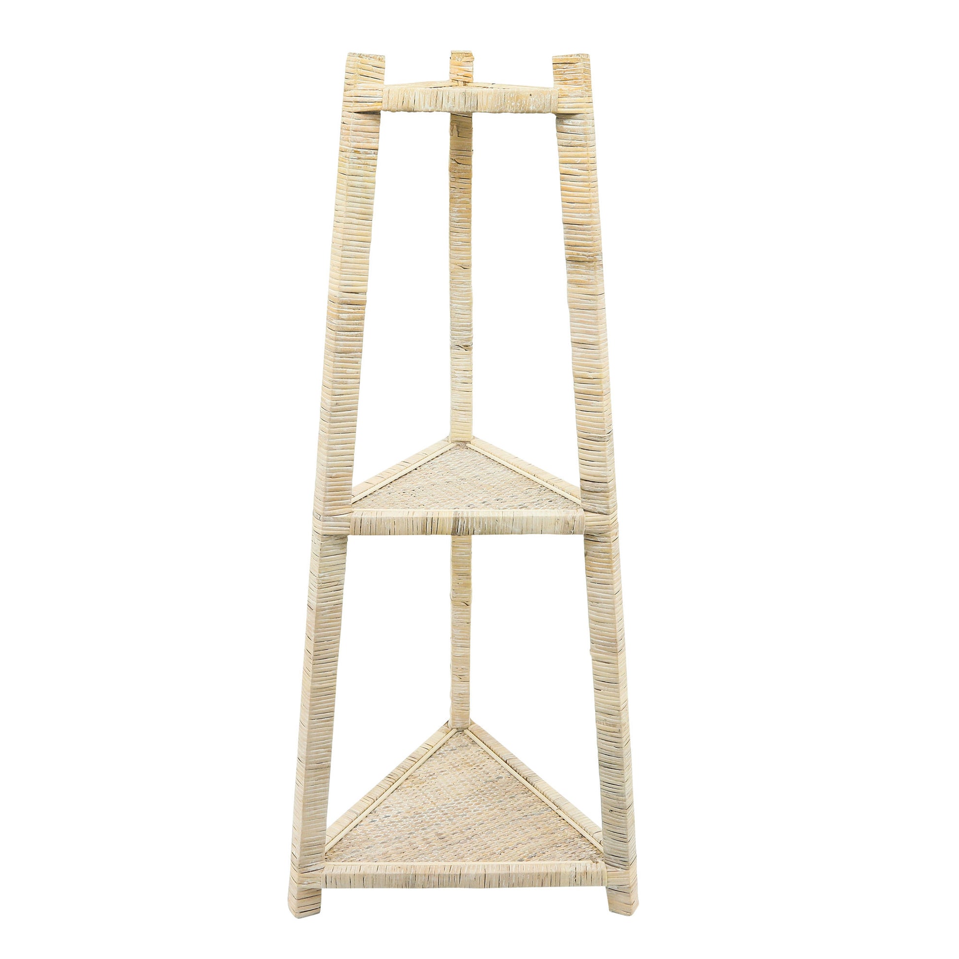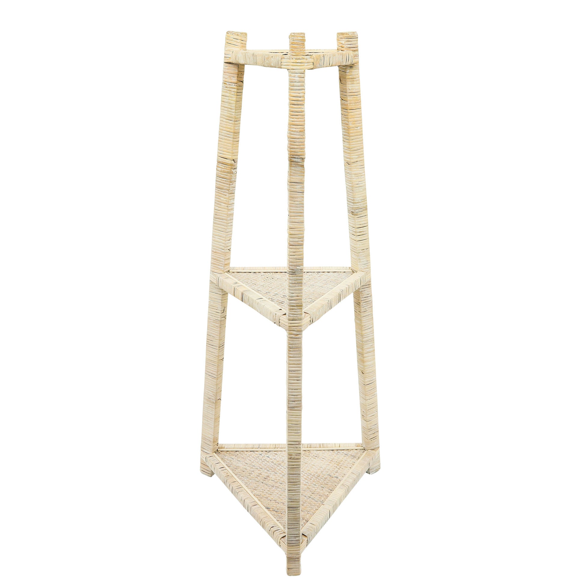 Perfect for smaller spaces like city lofts and first apartments. This three tiered shelf lets you take advantage of every corner. Crafted from solid wood and rattan and boasts a pristine white tone for a look that is versatile enough to blend easily with nearly any color palette.Sagebrook Home has been formed from a love of design, a commitment to service and a dedication to quality. They create and import fashion forward items in the most popular design styles. Backed with years of experience in the textile field, They are now providing a complete Home decor story. the combination of wall decor, furniture, lighting and Home accessories are all coordinated with textiles to provide a complete Home look. Sagebrook Home is committed to providing the best Home decor and accent pieces at value prices.