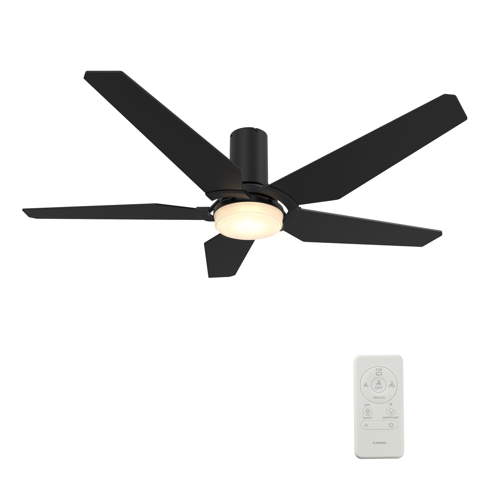 Woodrow 52 Inch 5-Blade Flush Mount Smart Ceiling Fan - Black/Black