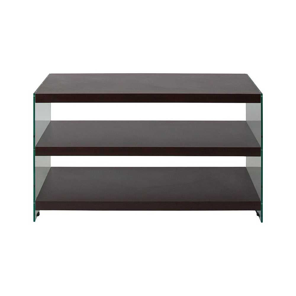 Take a little trip to sensational and elevate your entertaining space with this sharp looking TV Stand with Glass Frame. With the glass sided stand providing you with an uncluttered view, this brilliantly designed piece will steal the show in your home. Its modern open shelved structure with 8" of spacing allows you to display your game consoles, media players and cable boxes openly without infrared interference. Prominently display your 40" Flat Screen on this gorgeous stand that'll serve as an attraction piece on its own. [NAN-JN-2626TR-G-GG]