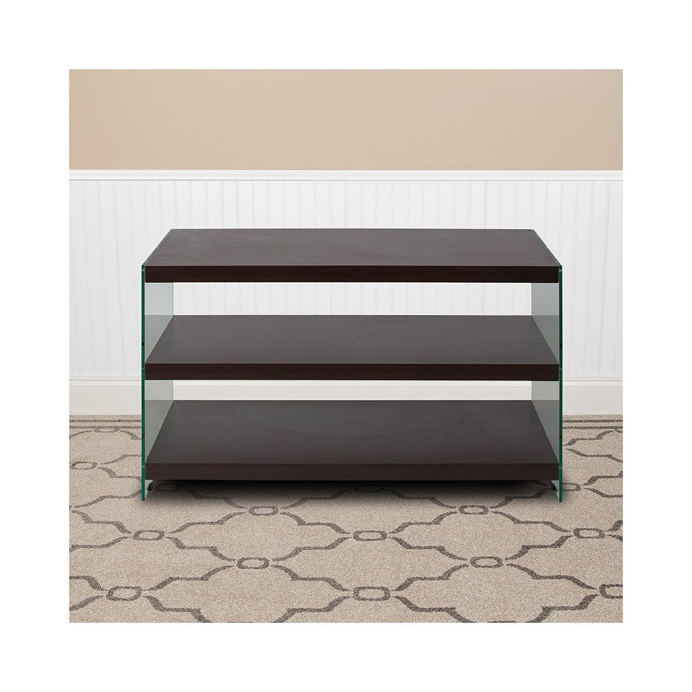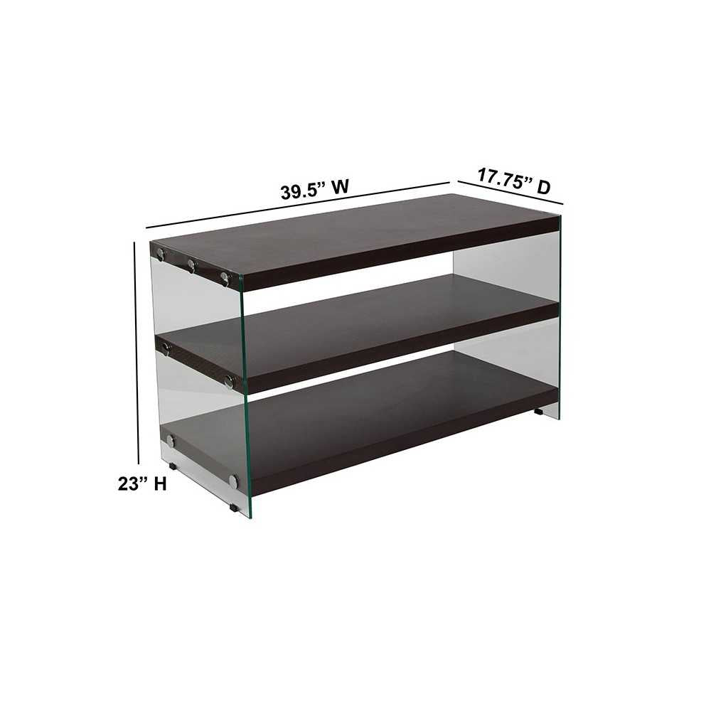 Wynwood Collection Dark Ash Wood Grain Finish TV Stand with Shelves and Glass Frame