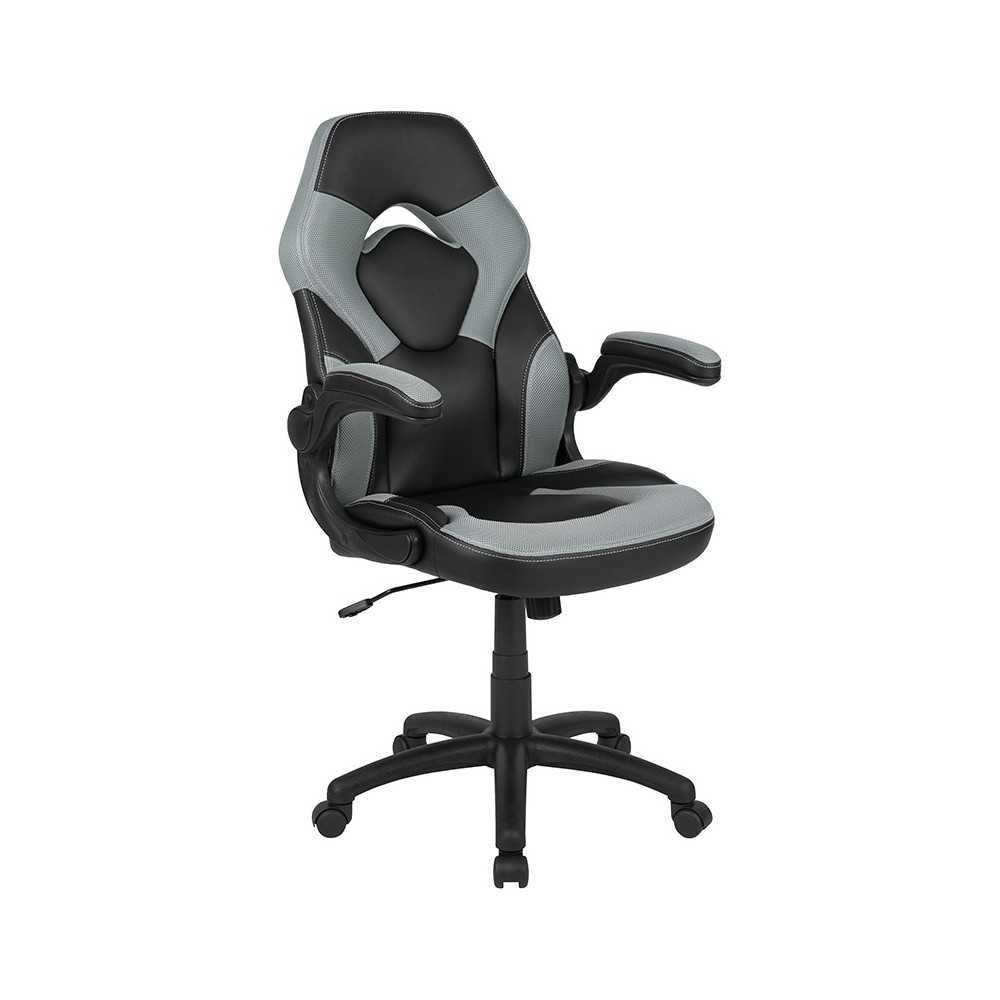 X10 Gaming Chair Racing Office Ergonomic Computer PC Adjustable Swivel Chair with Flip-up Arms, Gray/Black LeatherSoft