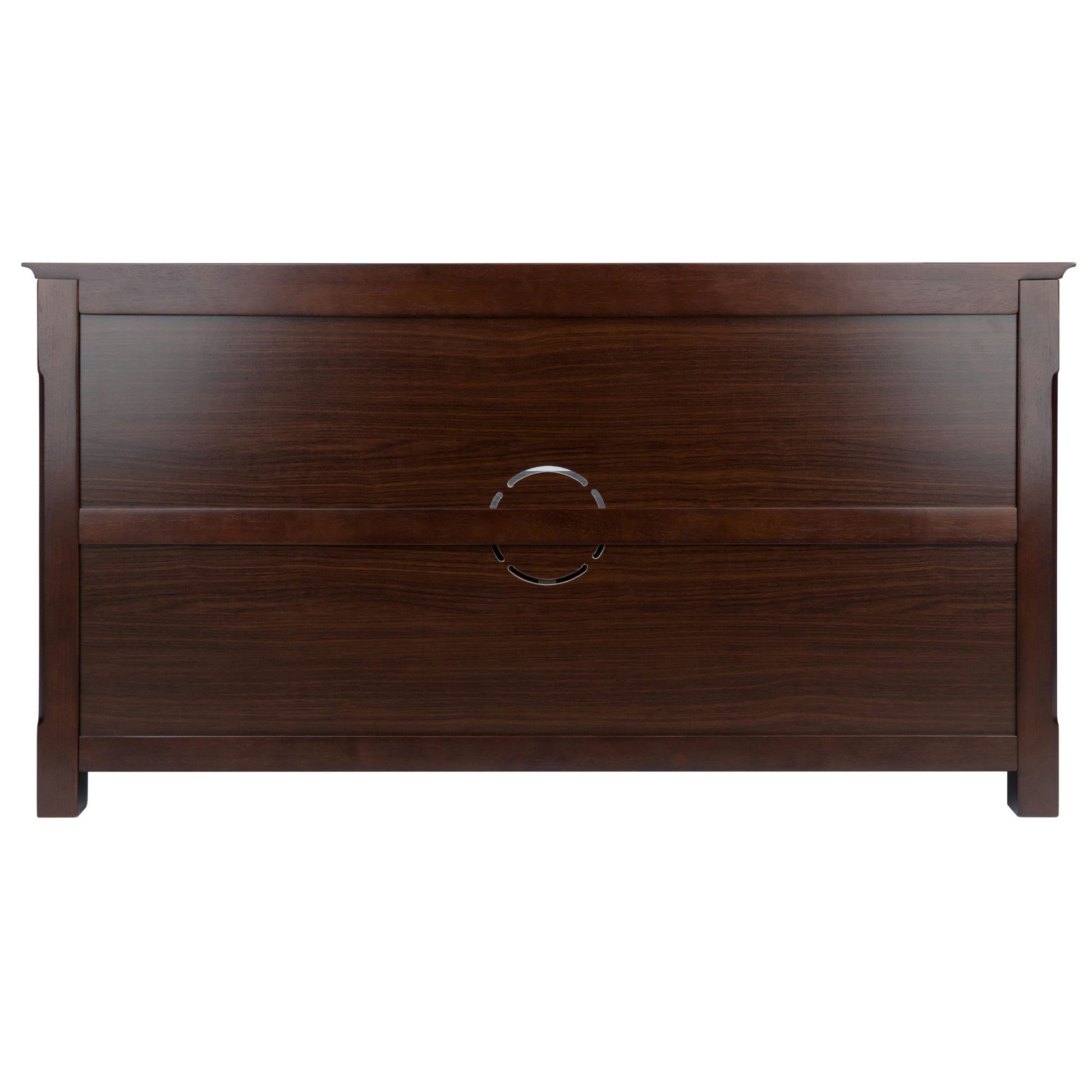 - Construction with combination of solid and composite wood in cappuccino finish. Assembly required.